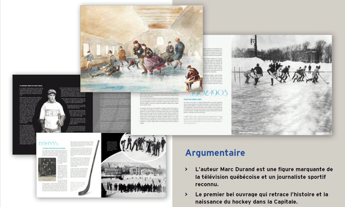 Je peux enfin vous l’annoncer : le livre qui prend le titre de « La Coupe à Québec: L’histoire des Bulldogs et la naissance du hockey » sera bientôt en impression et sera disponible dès le mois de novembre. Les coéditeurs, la Commission de la capitale nationale du Québec et les Éditions Sylvain Harvey m’ont montré les maquettes cette semaine et je suis emballé ! Plus de 160 pages couleurs, abondamment illustrées à l’aide de 150 photos, dont plusieurs directement d’archives personnelles de familles liées à l’histoire du club.  Je n’en dis pas plus pour l’instant 😉  La suite cette semaine !