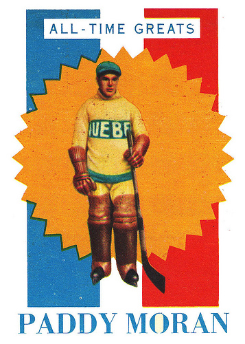 Paddy Moran, un vrai gars de Québec, un vrai showman, un grand gardien de buts, un courageux batailleur, un vrai de vrai BULLDOG pendant 17 ans. Je trouve que cest aussi le meilleur représentant d’une race de gardiens exceptionnelle maintenant éteinte, les gardiens debouts. Ne ratons pas cette occasion dhonorer fièrement ces gardiens légendaires dont Paddy est reconnu comme étant le plus coriace et le plus spectaculaire dentre eux, ne ratons pas cette occasion unique de vanter ce grand joueur de notre ville ou est née le sport du hockey, celui qui a gagné le première coupe Stanley du hockey moderne par jeux banc ! Paddy Moran, par son jeu, son style unique et son charisme qui électrisait les foules est une icone pour le hockey, pour l’histoire et pour la ville de Québec.